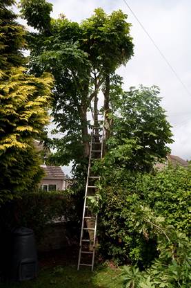 In 1966, Brian Griffiths, a friend and neighbour germinated a conker and planted a baby horse chestnut tree (ladder attached left) in the back garden of our family home in Pembroke, West Wales.