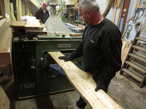A local sawmill in Pembroke Dock agreed to cut the trunk into 50mm thick planks. On hearing the connection with Brian they refused to take payment for the service.